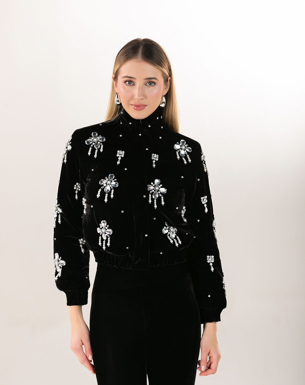 JAQUETA BOMBER DE VELUDO BORDADA GRETA - PRETA